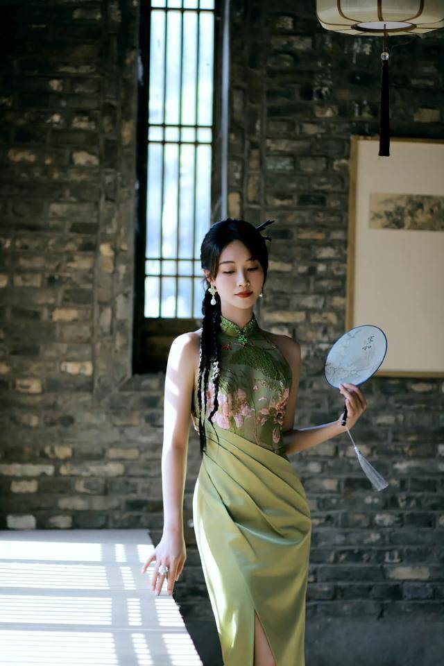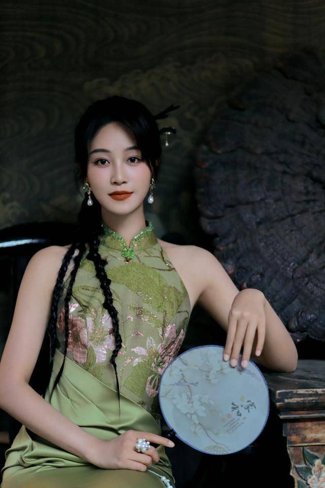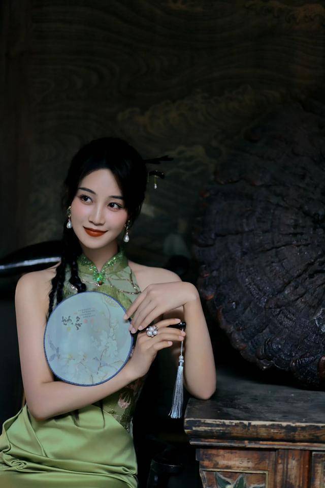 曾在一部电视剧里,看到蓝盈莹古装丫鬟的扮相,并没有预期中的惊艳。然而,今日看到的这组写真,着实令人眼前一亮。原来身着绿色旗袍的蓝盈莹,竟美得如此出众。