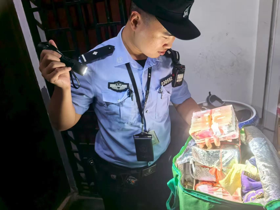 9月10日18时许,普陀公安分局宜川新村派出所接辖区居民李阿姨报警称,自家门口的楼道内有一个保温袋,里面装满了成捆的现金。接报后,民警唐浩天和辅警吴斌立即赶到现场。