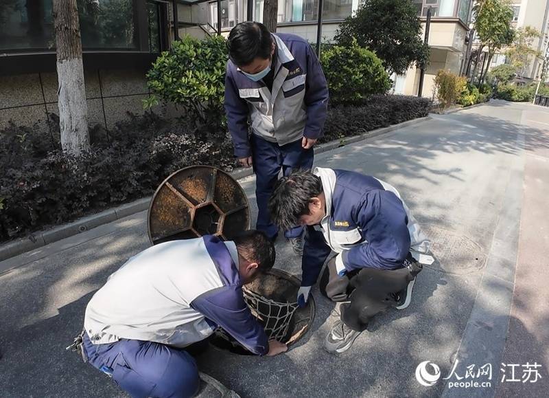 奥园观湖誉园物业人员日常排查小区污水管道。人民网 李静晔摄